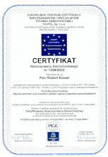 - Certyfikowany Rzeczoznawca Samochodowy z listy Ministra Infrastruktury, uprawnienia nr: RS 001383